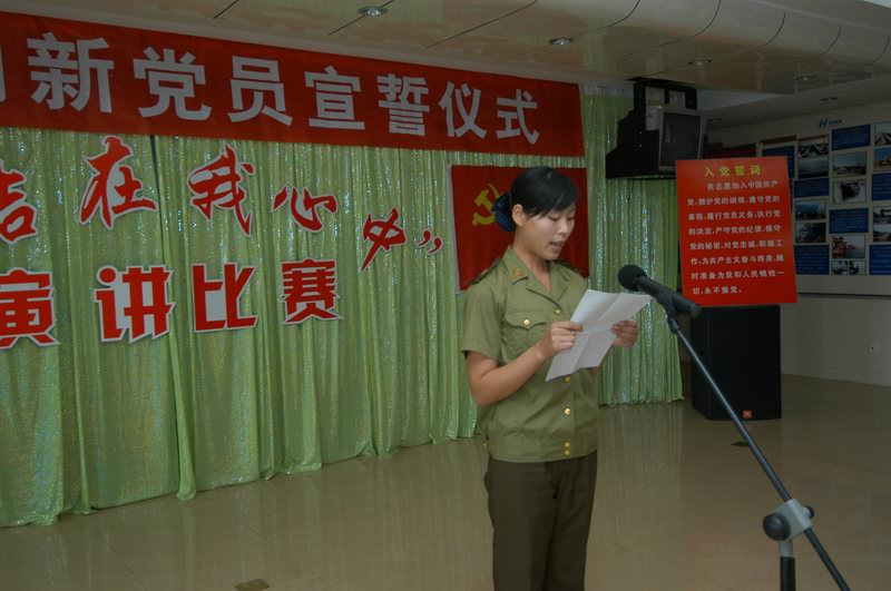 面對(duì)黨旗,舉起右手,緊握拳頭,莊嚴(yán)宣誓:“我志愿加入中國(guó)共產(chǎn)黨,擁護(hù)黨的綱領(lǐng),遵守黨的章程,履行黨的義務(wù),執(zhí)行黨的決定……”。在紀(jì)念建黨88周年之際,公司黨委在四樓會(huì)議室為今年新加入中國(guó)共產(chǎn)黨的武志麗等10名同志舉行了入黨宣誓儀式。公司黨辦室主任石林叢同志主持儀式并領(lǐng)誓。